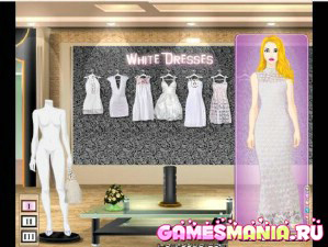 Ещё одна модель, которая ждет вашей помощи перед выходом на подиум. Подберите ей прическу, макияж и одежду. Для того, чтобы сделать макияж и прическу, нажимайте на таблички справа - Вам откроются окошки, с помощью которых вы сможете выбрать наилучшее сочетание из множества вариантов макияжа и причесок. Нажав на табличку со стрелочкой, вы переходите в комнату примерочной, где вам предложат три варианта гардероба (римские цифры 1, 2, 3)